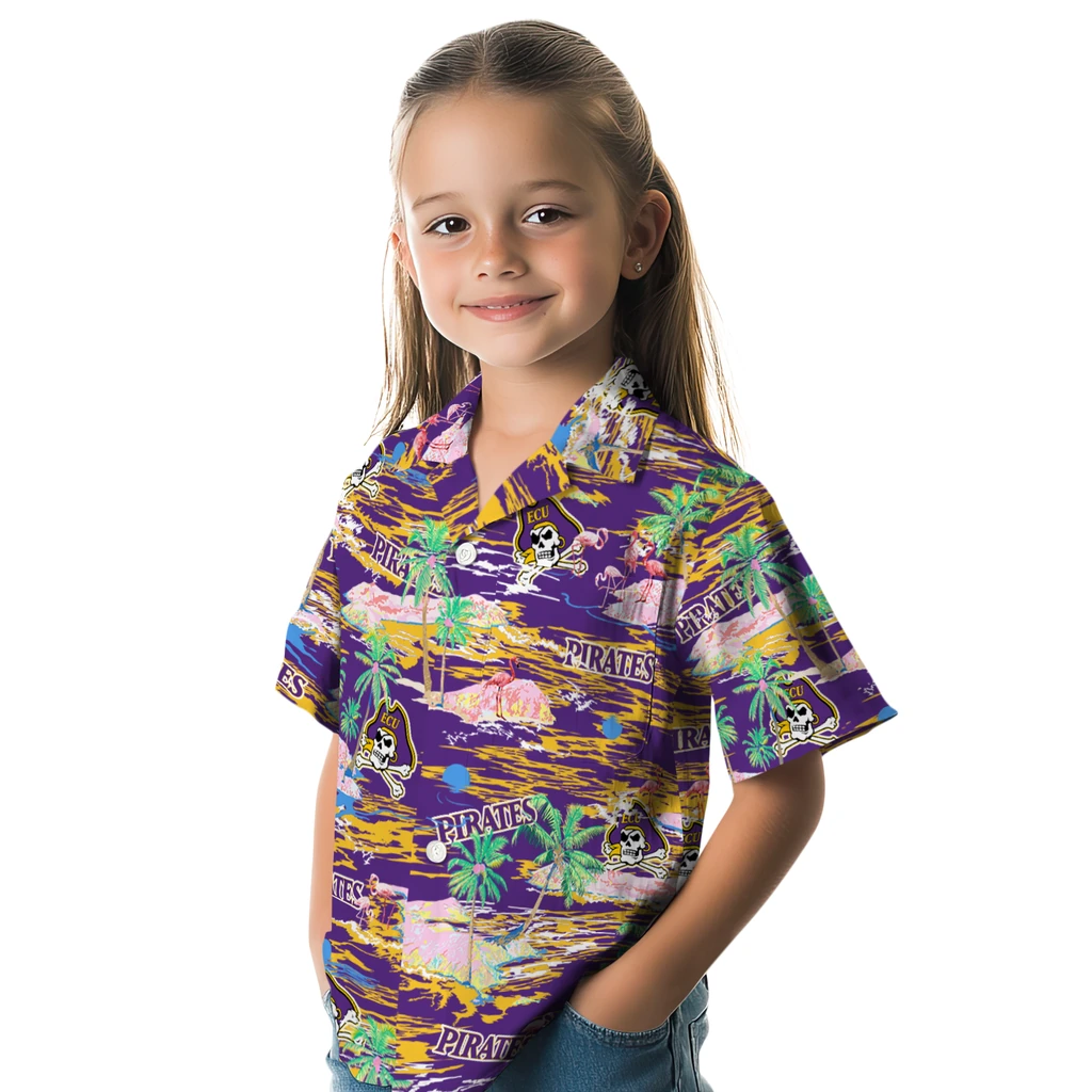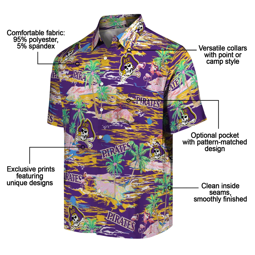 Give a whole new meaning to your wardrobe with East Carolina Pirates Palm Horizon Purple Hawaiian Shirt from TapaAlohaShirt! The various fabrics combined offer extreme breathability for comfort in these vibrant, eye-catching designs that keep things chill in style. Ideal for various occasions, these shirts spell volumes about style and character, all wrapped up in one stunning package.