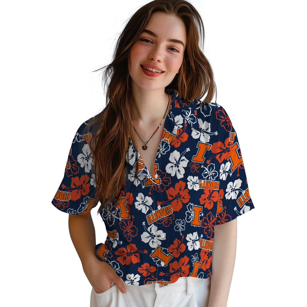 Illinois Fighting Illini Hawaiian Shirt – Tropical Floral Pattern