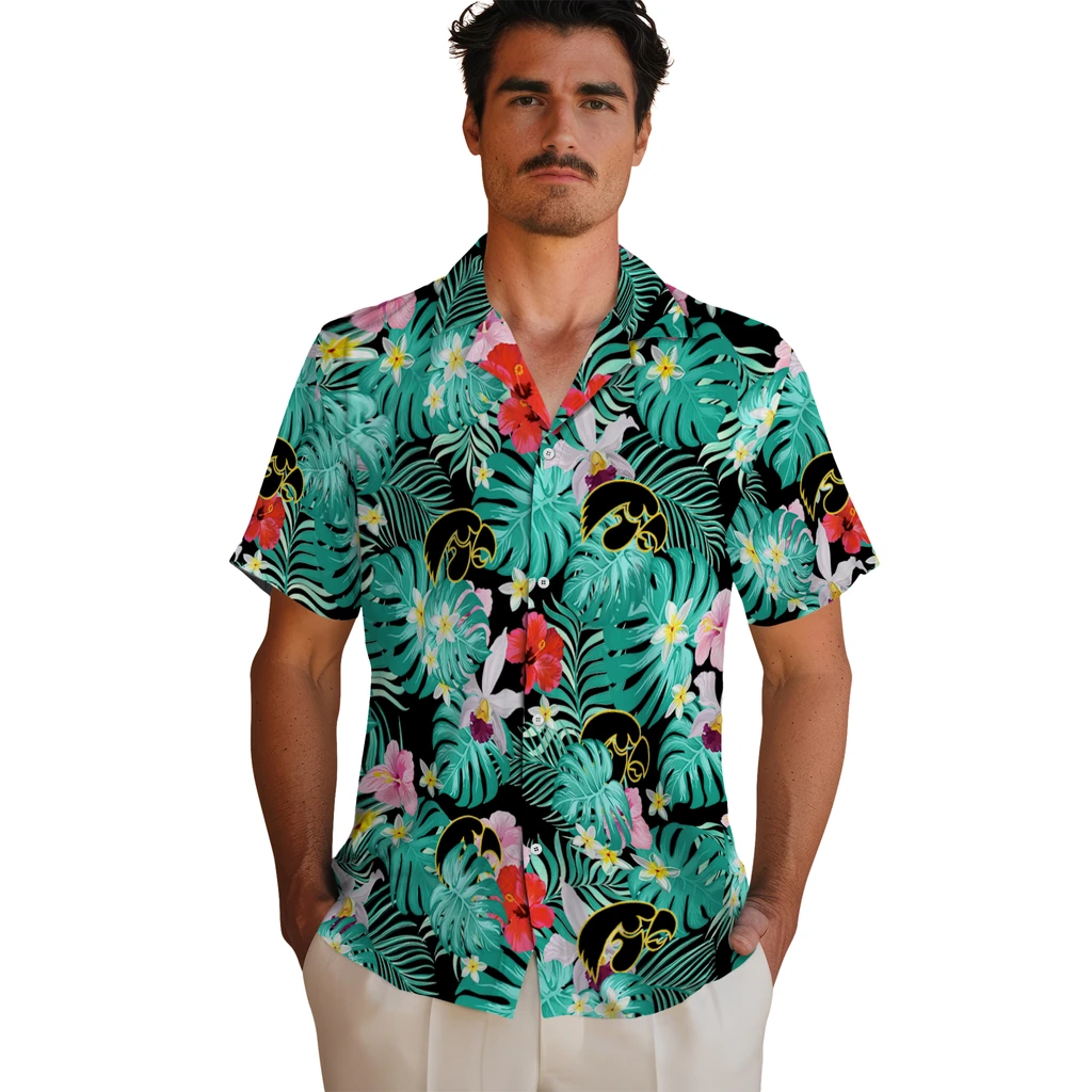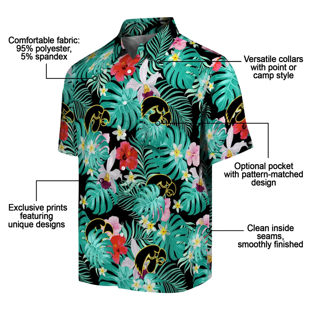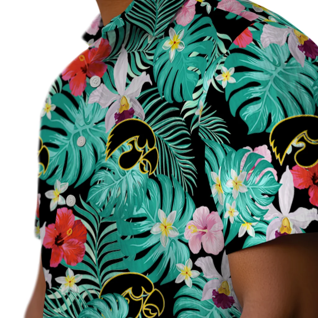 Iowa Hawkeyes Hawaiian Shirt – Custom Hibiscus Blossoms Black