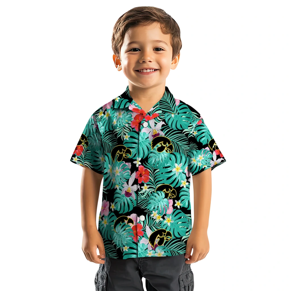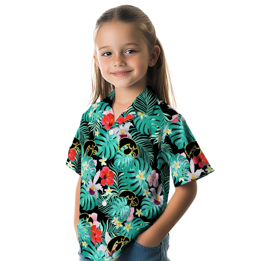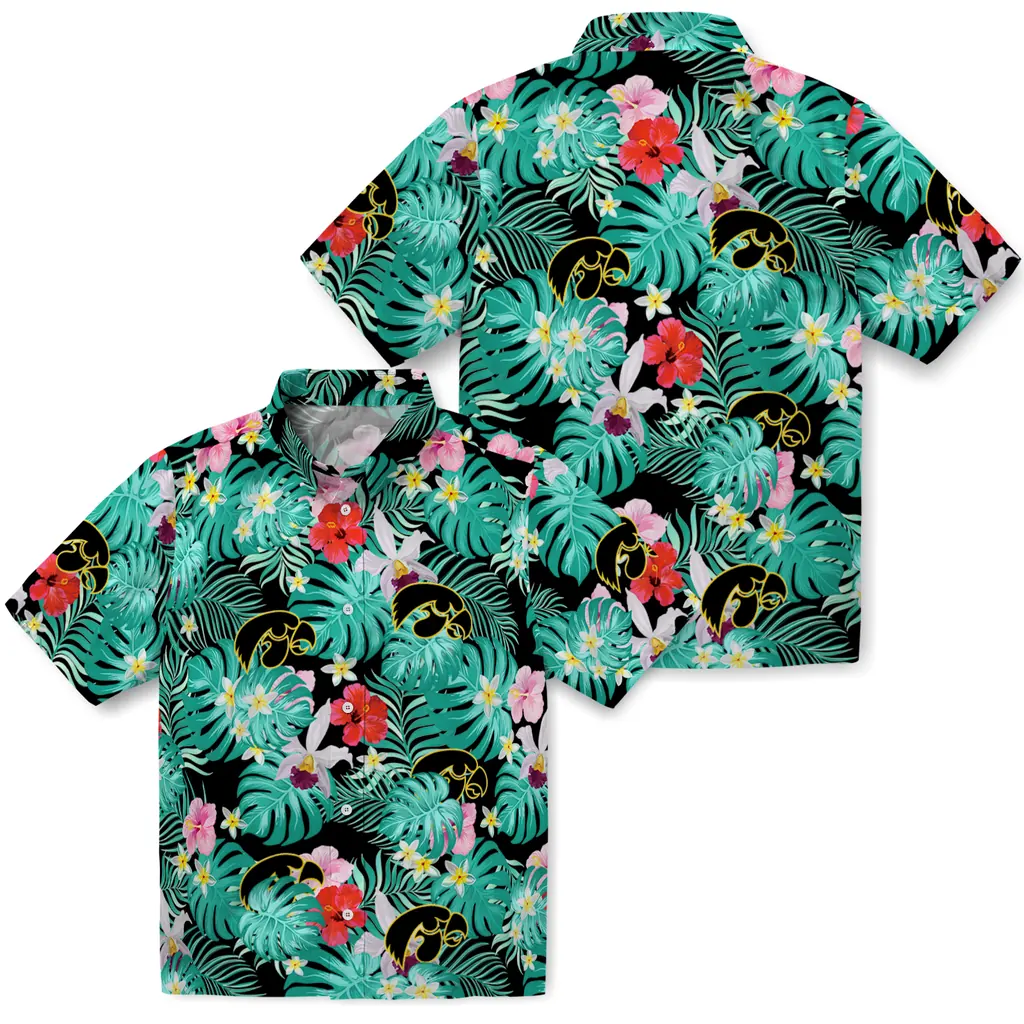 Iowa Hawkeyes Hawaiian Shirt – Custom Hibiscus Blossoms Black