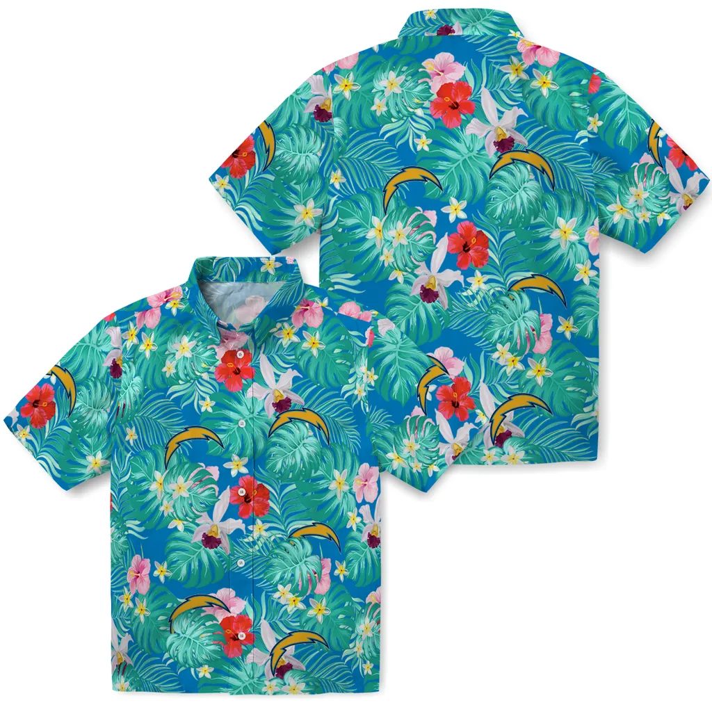 Los Angeles Chargers Hawaiian Shirt – Customized Hibiscus Blossoms Blue