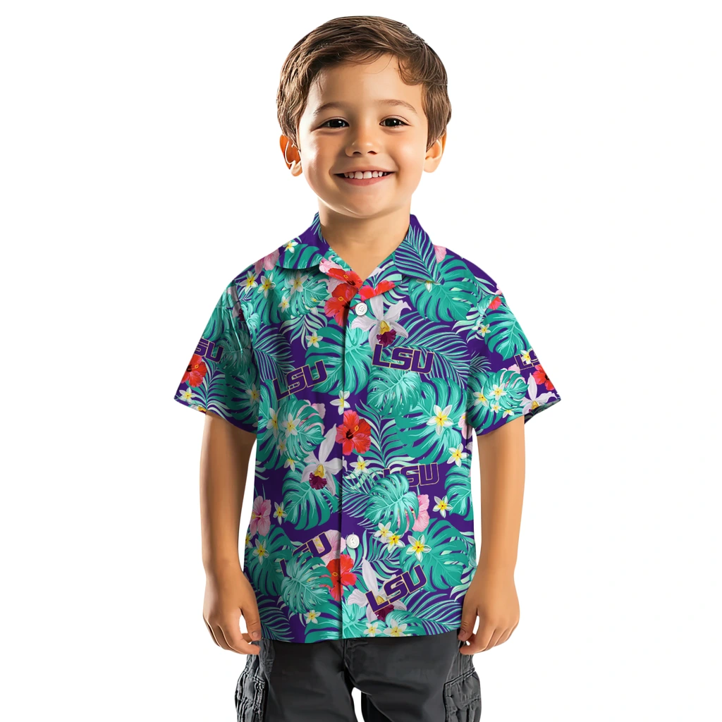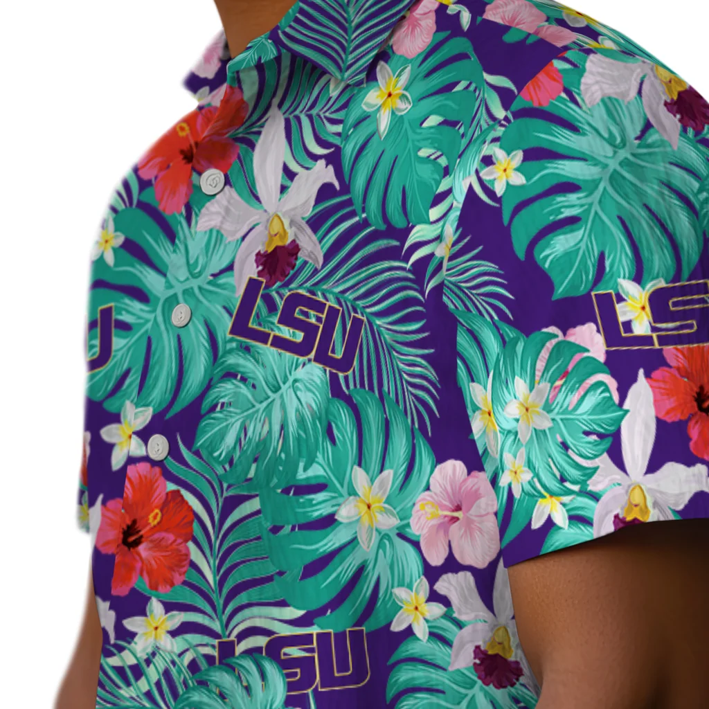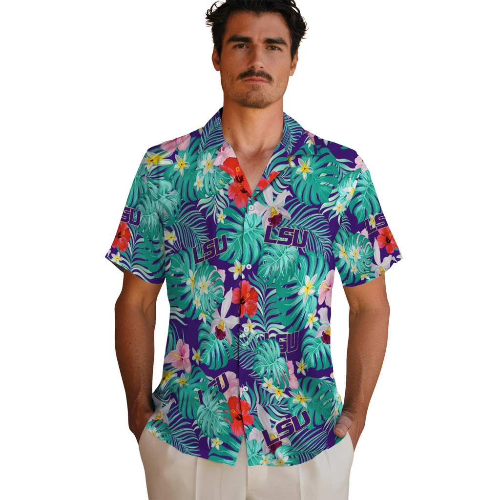 LSU Tigers Hawaiian Shirt – Customized Hibiscus Blossoms Purple