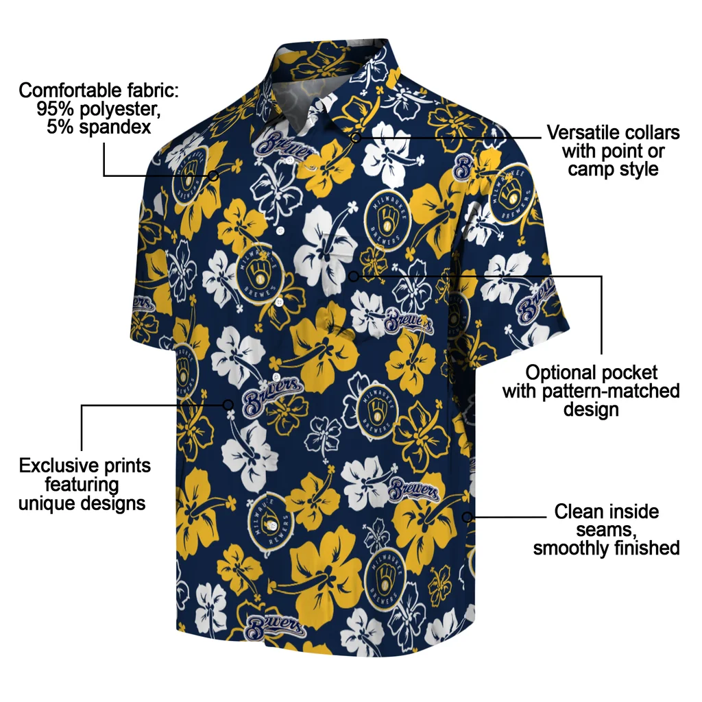 Give a whole new meaning to your wardrobe with Custom Milwaukee Brewers Floral Baseball Navy Blue White Hawaiian Shirt from TapaAlohaShirt! The various fabrics combined offer extreme breathability for comfort in these vibrant, eye-catching designs that keep things chill in style. Ideal for various occasions, these shirts spell volumes about style and character, all wrapped up in one stunning package.