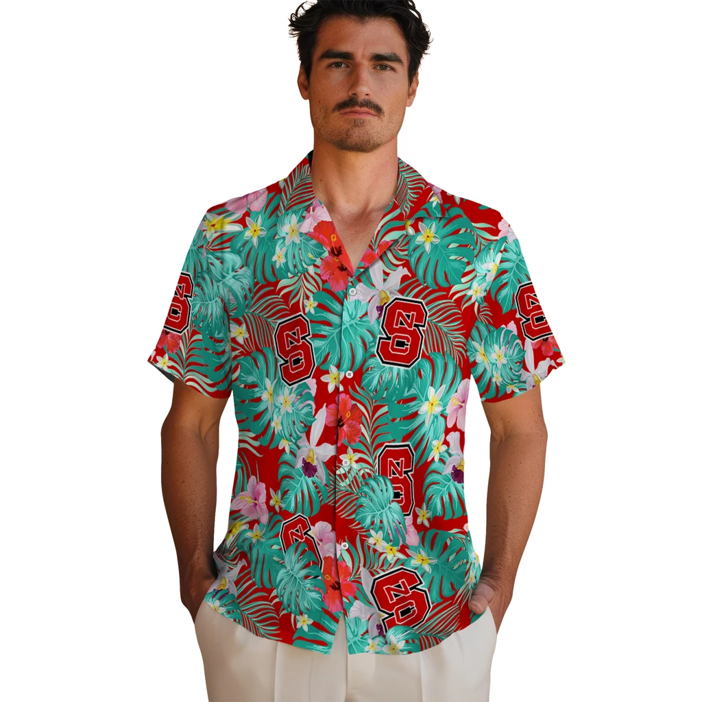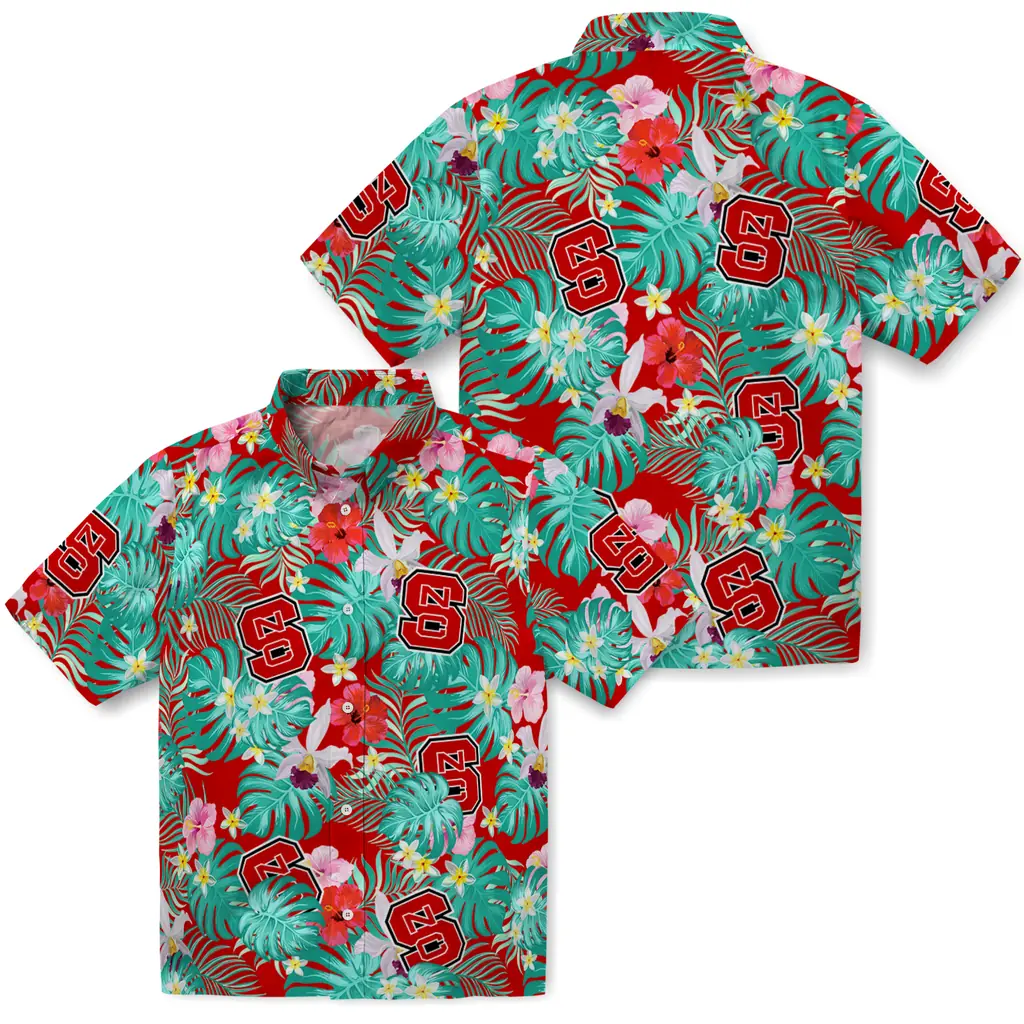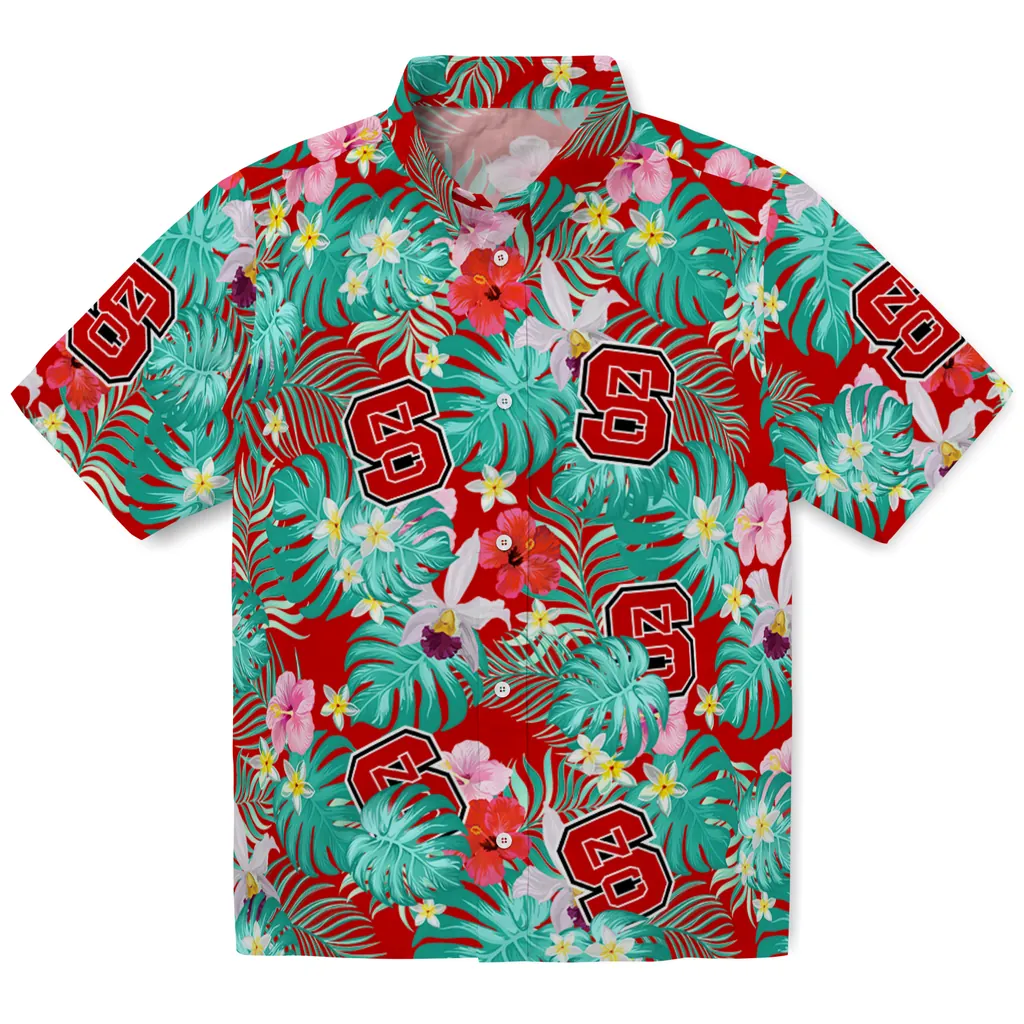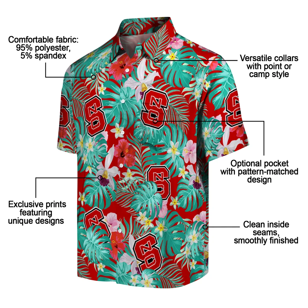NC State Wolfpack Hawaiian Shirt – Customized Hibiscus Blossoms Red