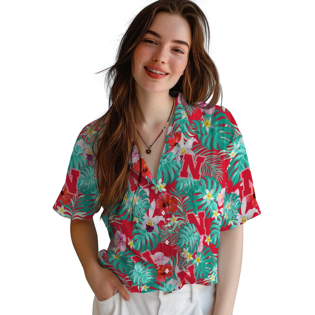 Nebraska Cornhuskers Hawaiian Shirt – Personalized Hibiscus Blossoms Red