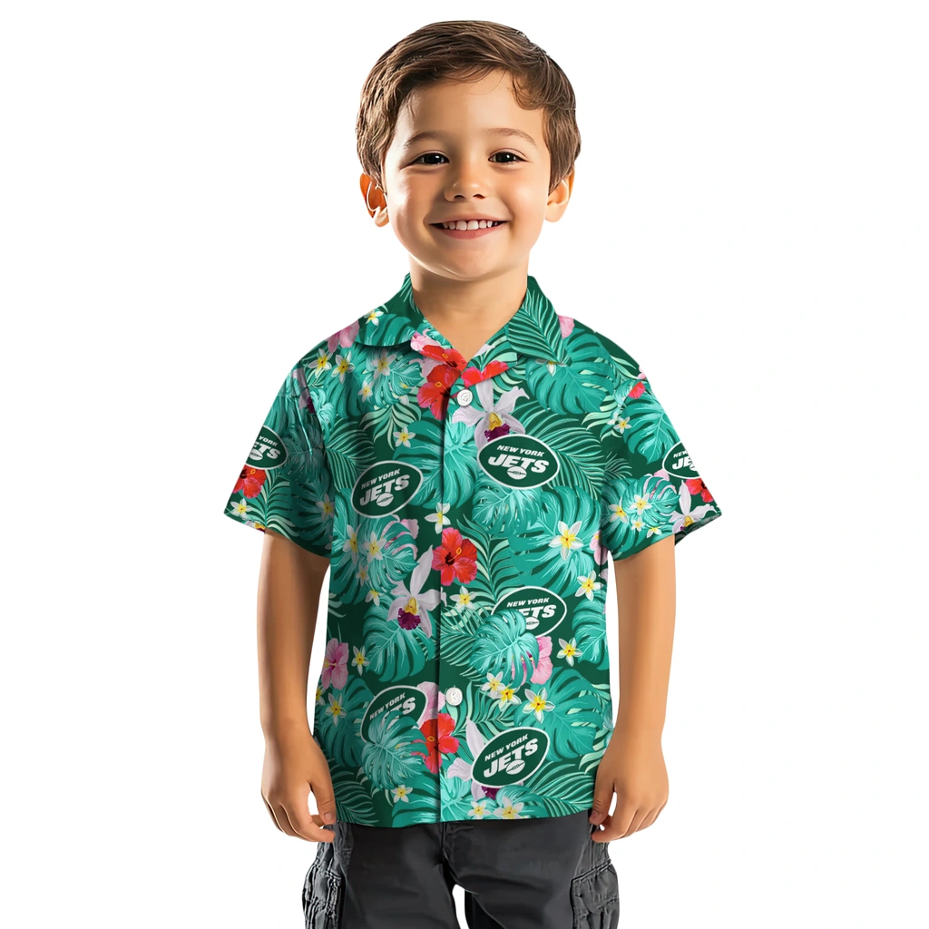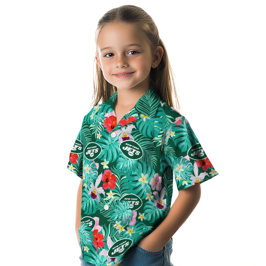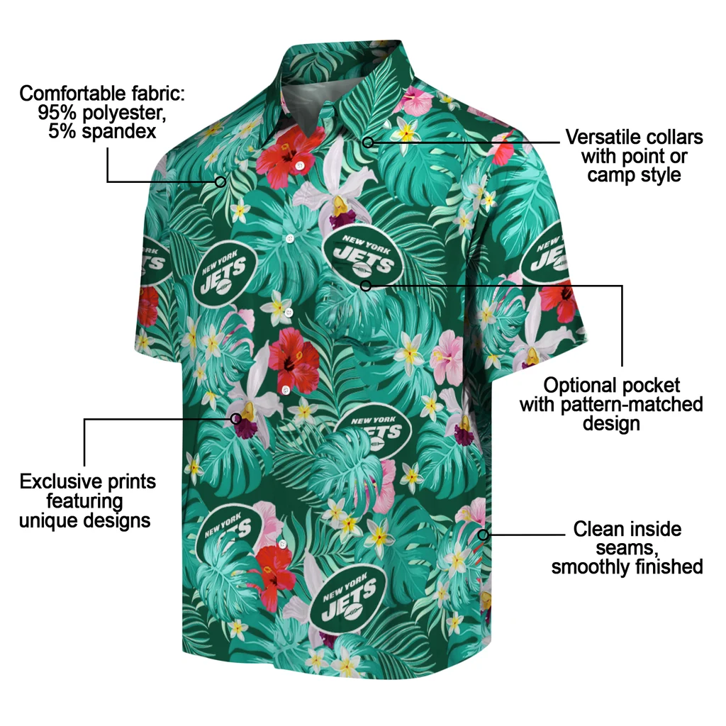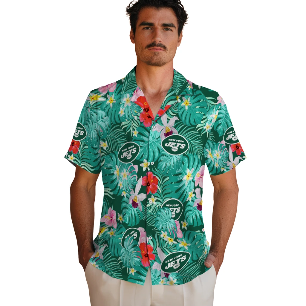 New York Jets Hawaiian Shirt – Personalized Hibiscus Blossoms Green