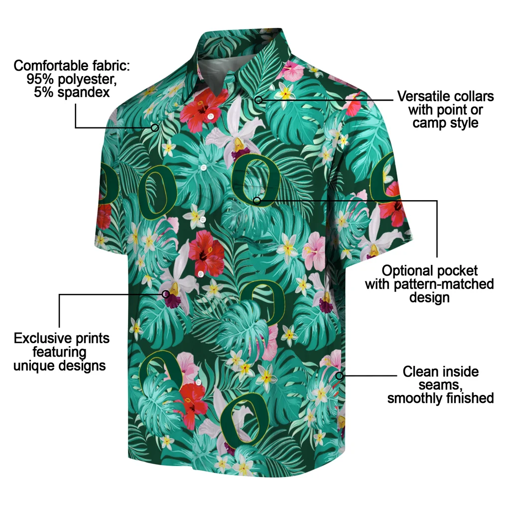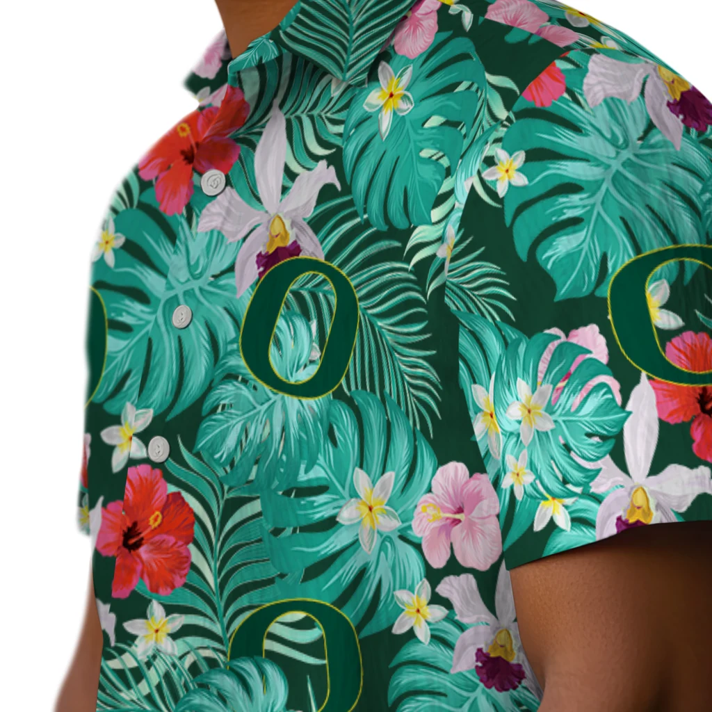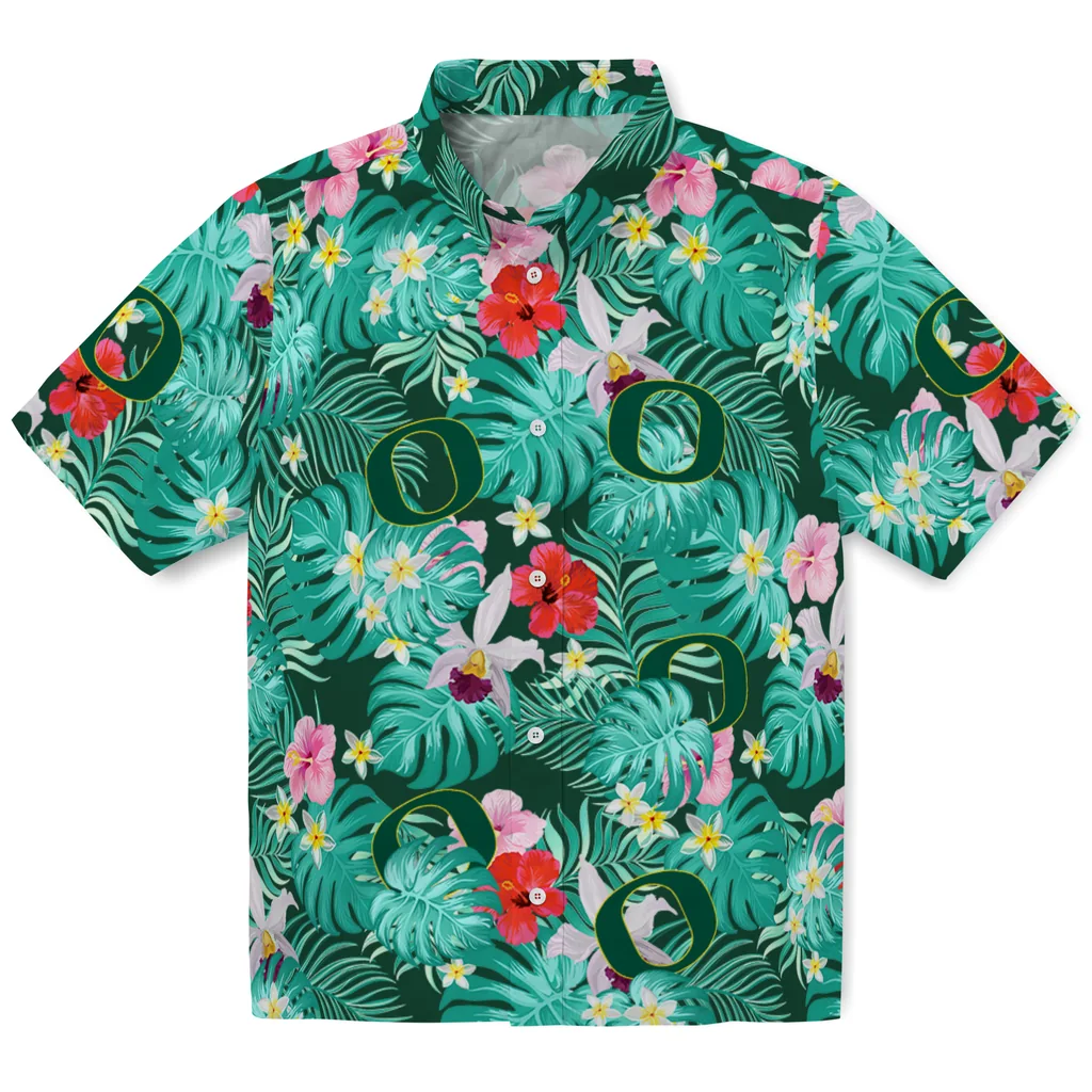 Oregon Ducks Hawaiian Shirt – Personalized Hibiscus Blossoms Green