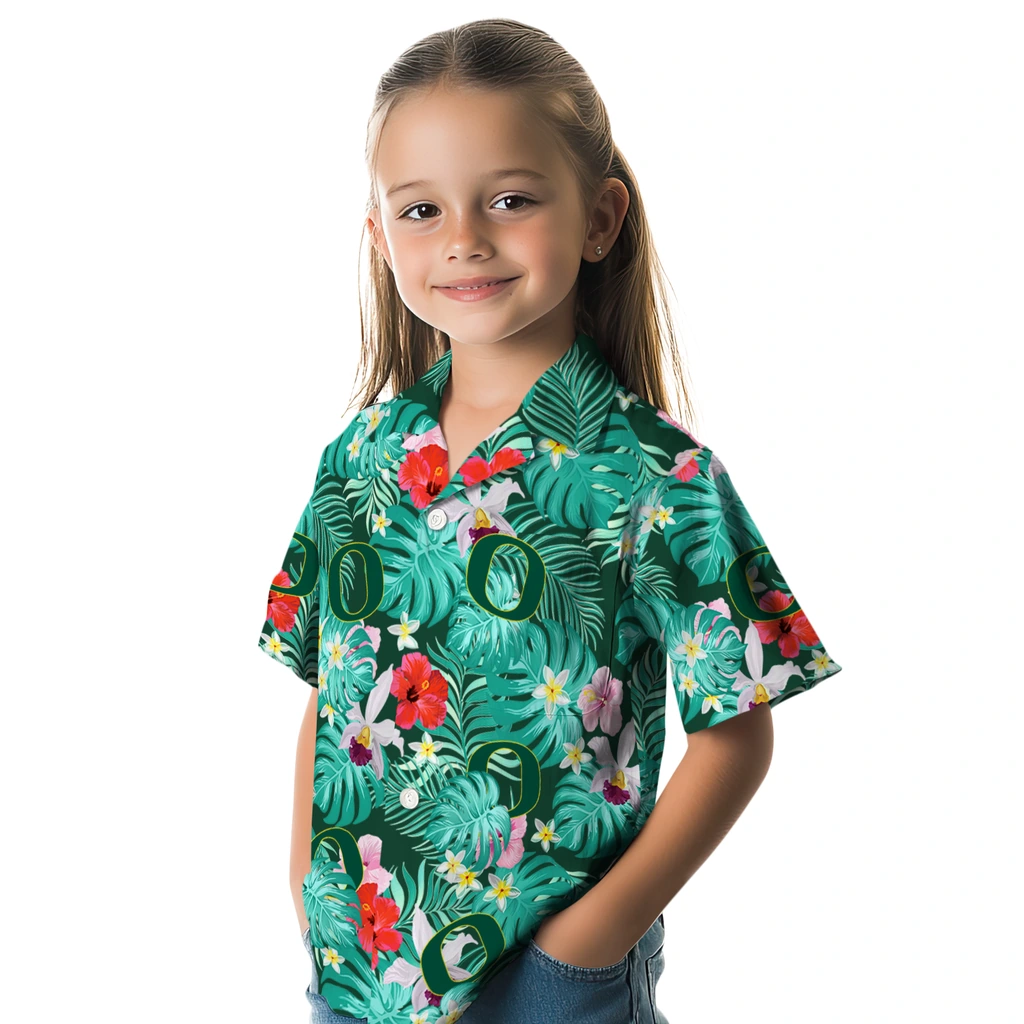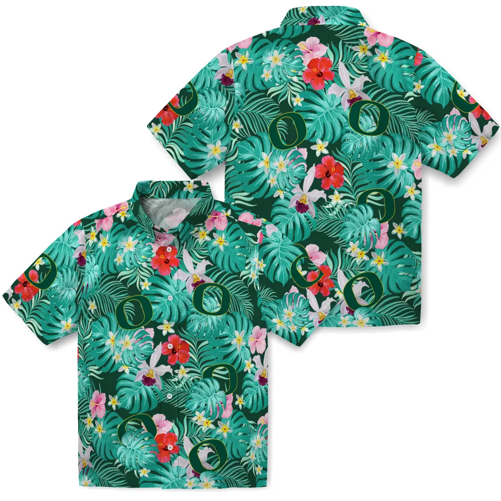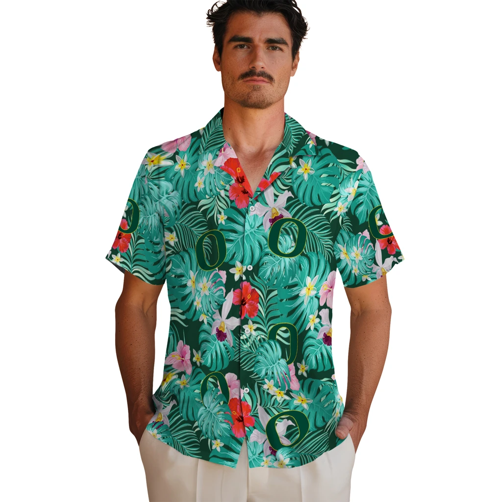 Oregon Ducks Hawaiian Shirt – Personalized Hibiscus Blossoms Green