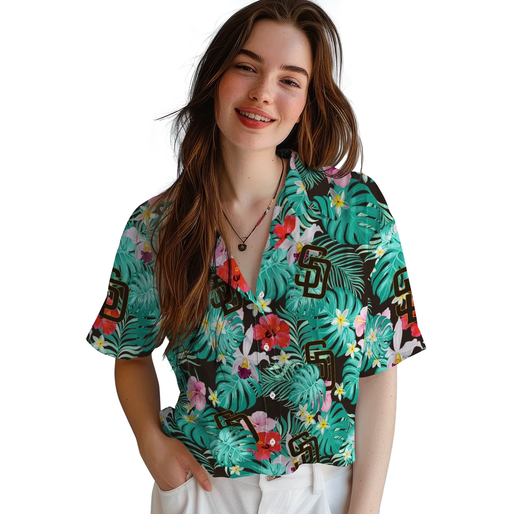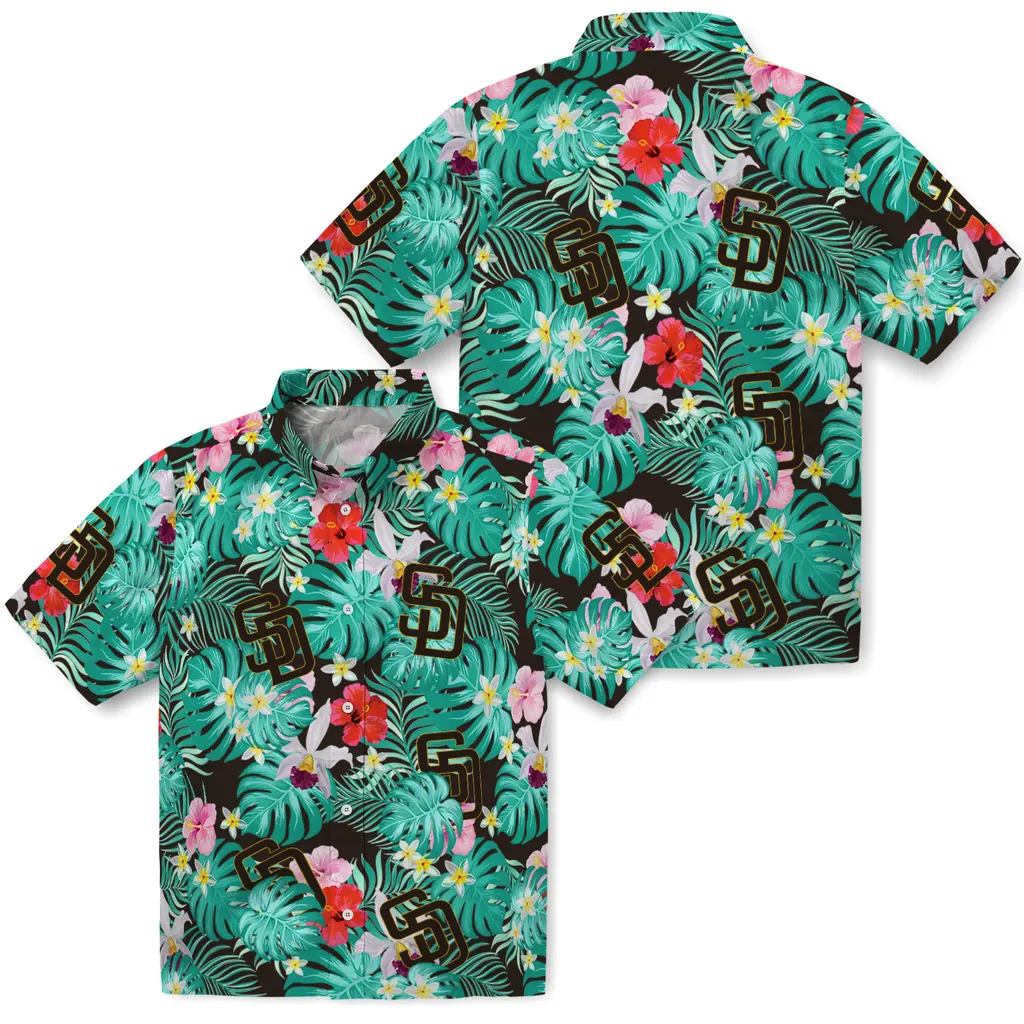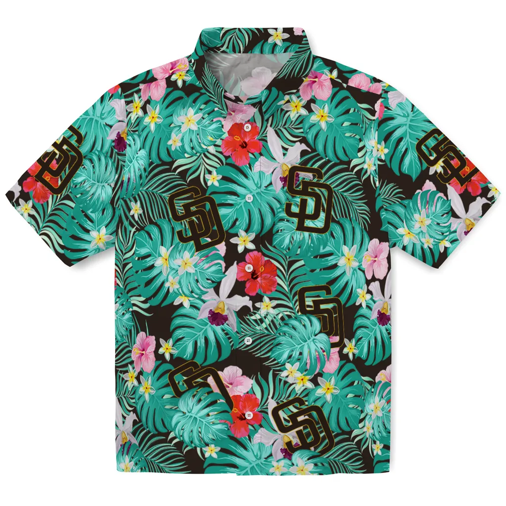 San Diego Padres Hawaiian Shirt – Personalized Hibiscus Blossoms Brown