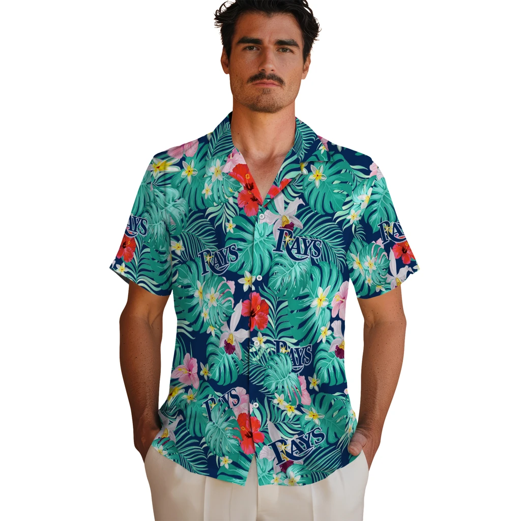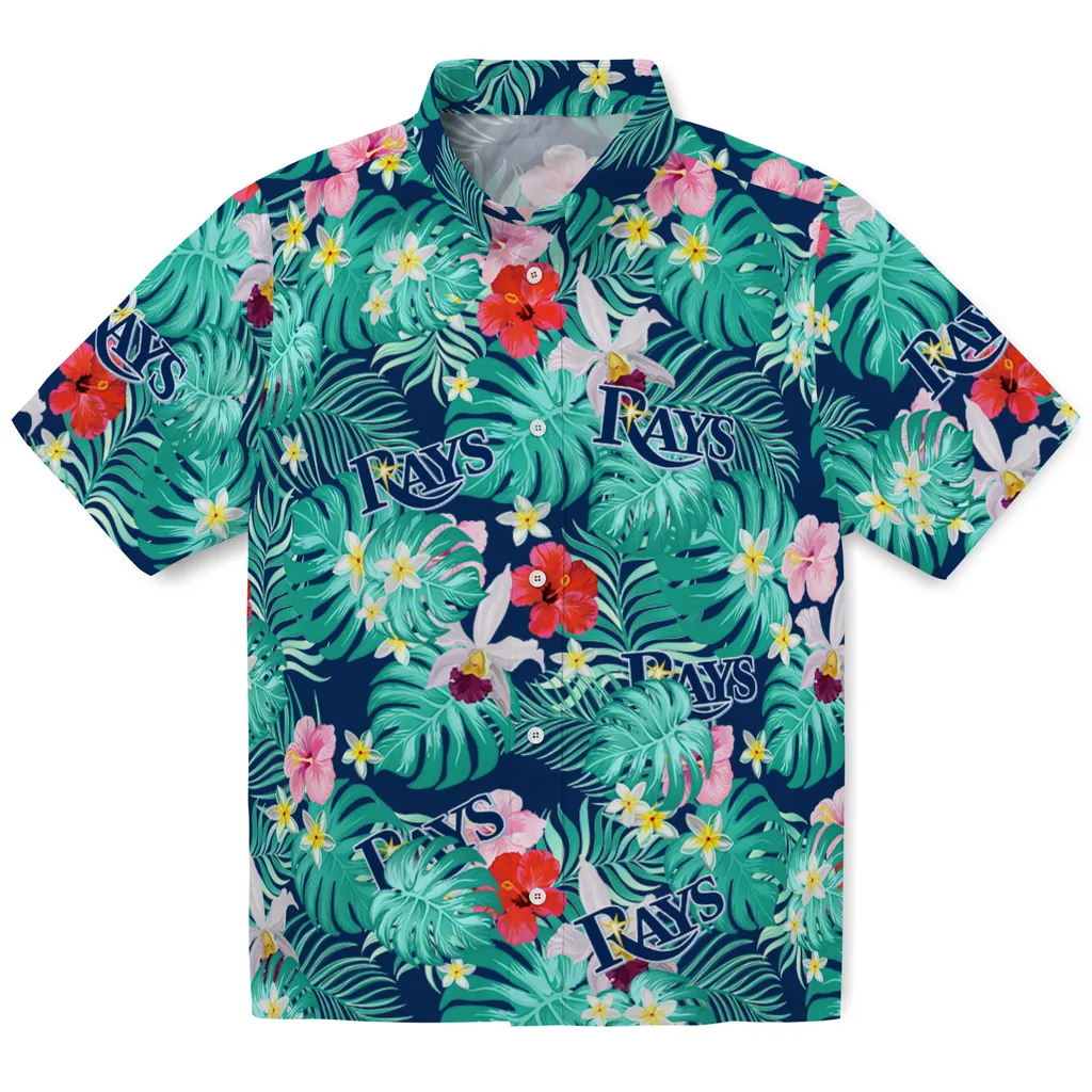 Tampa Bay Rays Hawaiian Shirt – Custom Hibiscus Blossoms Navy